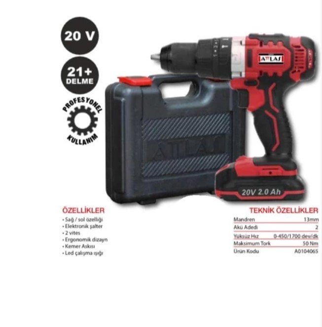 ATTLAS 20V 2,0 Ah DARBELİ AKÜLÜ MATKAP |